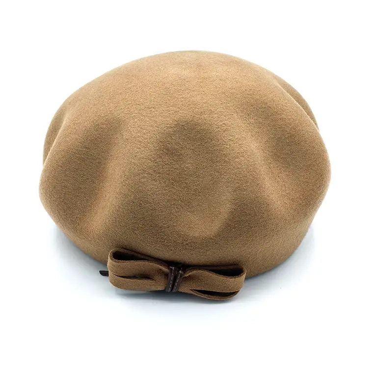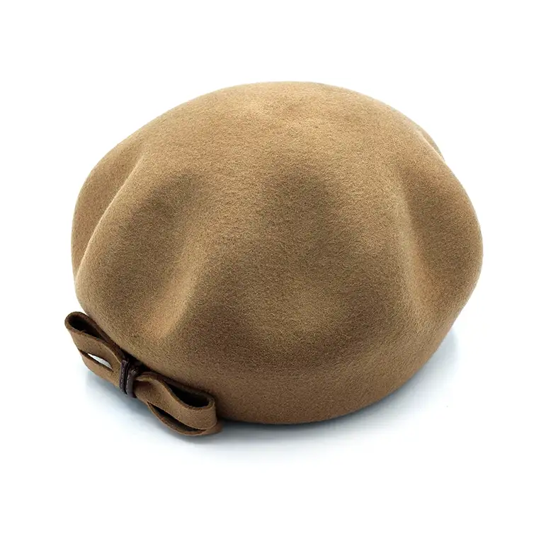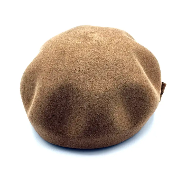 Boina Guerra italiana en fieltro y lana. Diseño clásico en color camel con lazo lateral.